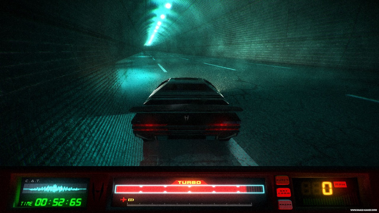 - Необычная красочная ретрографика. Загрузив эту игру, вы будто бы возвращаетесь в фантастические фильмы 80-ых, когда будущее принято было изображать именно таким: неоновым, кислотным, в минималистическом стиле, когда все вокруг сверкает и переливается совершенно безумными цветами. А в центре этого безумия находитесь вы на вашем высокоскоростном автомобиле.