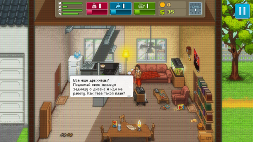 Основная сюжетная линия проходится путем побед над другими бойцами, причем чаще вы их бьете, тем активнее развиваются события в игре. Особенно приятно смотреть на сюжетные вставки, где почти все взято из боевиков девяностых, только, естественно, переделано в исключительно пиксельный арт. А вместо слов, всплывающие облачка с текстом. Тренировки в игре – это очень важный нюанс, для победы в игре вам необходимо тренировать навыки. Вот что уж действительно заслуживает похвалы, так это баланс между характеристиками. Если вы будете качаться только в силу, то будете валить медведя одним ударом, однако на один такой удар вы потратите всю свою энергию. Так что нужно развиваться равномерно.
