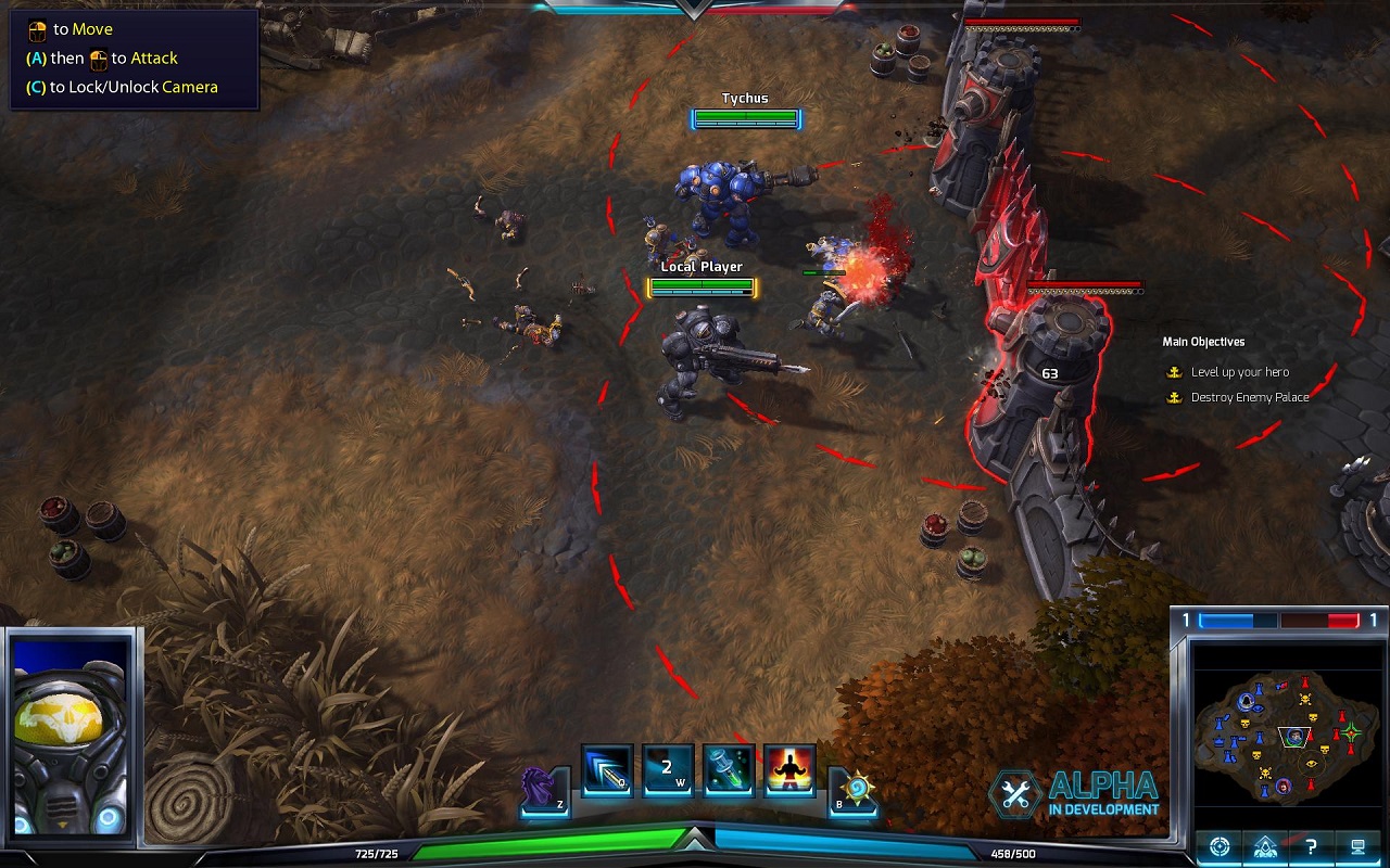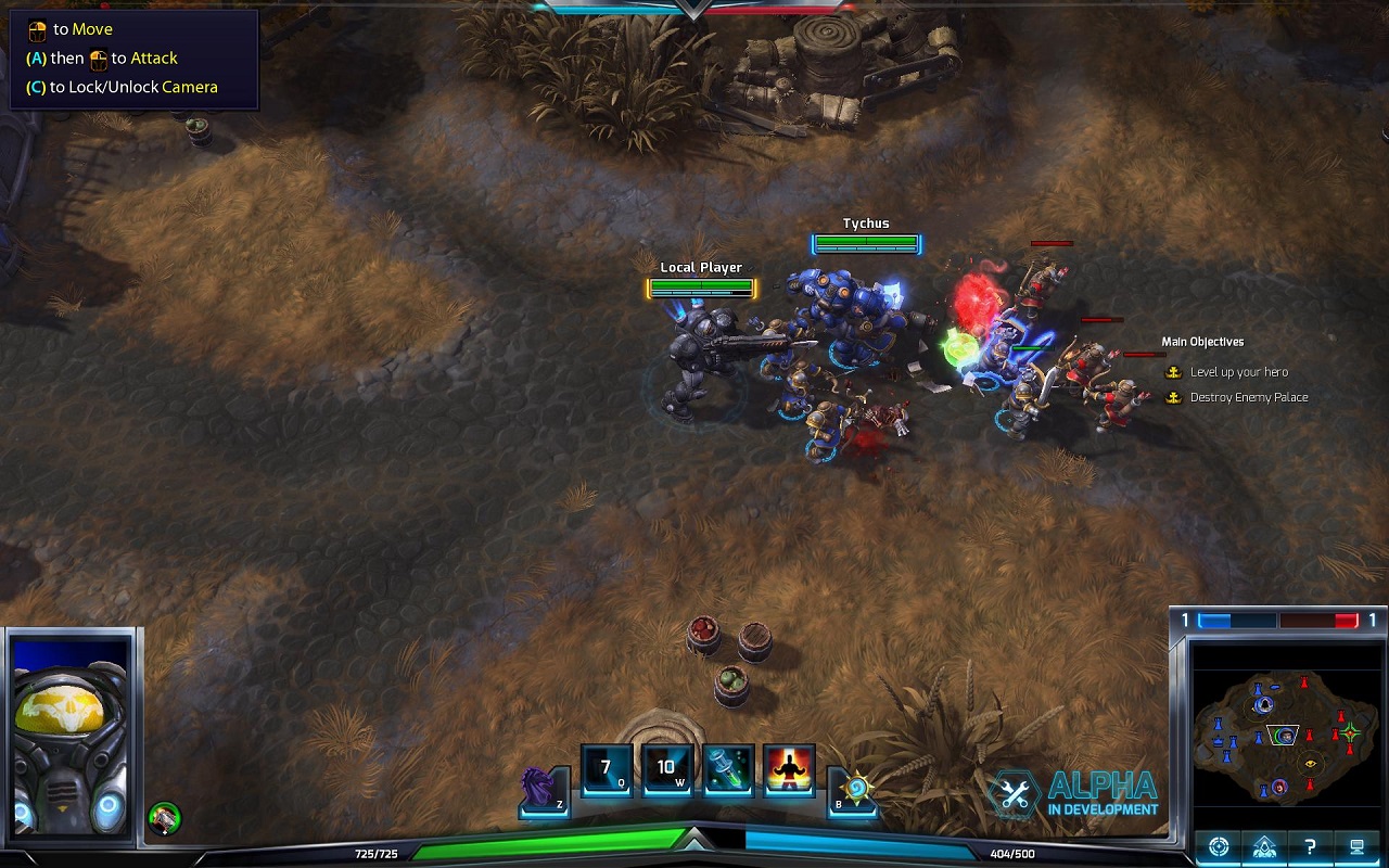 • Яркая графика. Разработчики постарались, создавая свой мир. Тем не менее, множество площадок – это просто улучшенные с помощью современных технологий локации из игр от Blizzard. Поэтому, не нужно сильно удивляться, если вы заметите знакомые просторы из Warcraft, Diablo, или Starcraft. Кроме того, все персонажи также заимствованы из различных проектов от Blizzard Entertainment.• Динамичный игровой процесс. В игре отсутствует закупка предметов для персонажей. Все умения прокачиваются постепенно, но их стало меньше, чем в той же Доте. Кроме того, в игрушке вам не нужно отделяться от команды, чтобы повысить свой уровень. Наоборот, нужно действовать вместе, уничтожать противников, и только тогда можно победить.