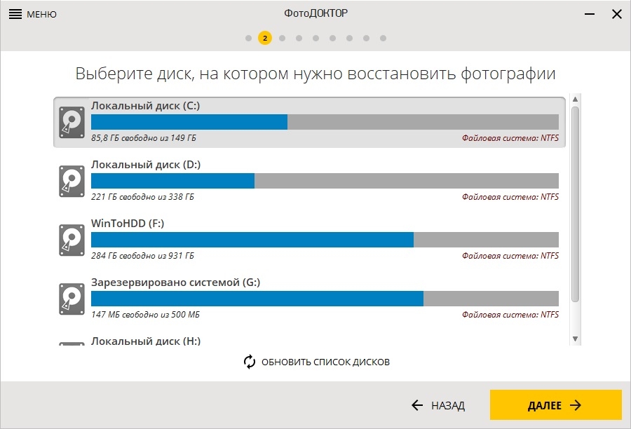Фактически, у нас есть пошаговое руководство, которое поможет вам выбрать параметры поиска и за считанные секунды покажет вам список файлов, готовых к восстановлению. ФотоДОКТОР сначала попросит вас выбрать среду для анализа. Затем вам будет предложено выбрать соотношение сторон и его приблизительный размер. Затем начинается собственно поиск. Не обязательно указывать форму и «вес» искомых изображений, но наличие этой информации существенно увеличивает скорость работы программы.